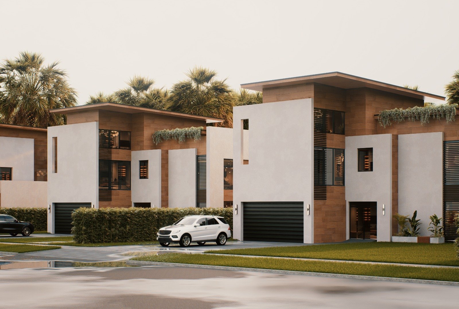 The client provided floor plans and elevation designs, which were used as the foundation for creating the full 3D model. The main house was carefully modeled based on the architectural drawings, while the surrounding houses were designed in a simplified form as requested by the client to represent the neighborhood context.